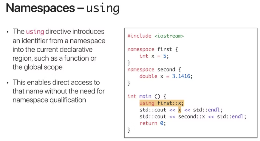 위의 예시와 같이 using first::x