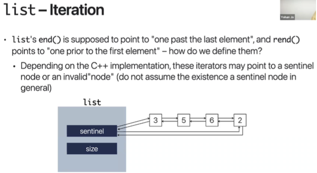 마지막 원소가 아닌 마지막 원소의 다음 요소를 가리키고