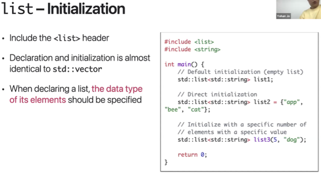 std::list<std::string> list2 = {"app", "bee", "cat"};