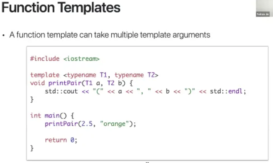 template <typename T1, typename T2>와 같이