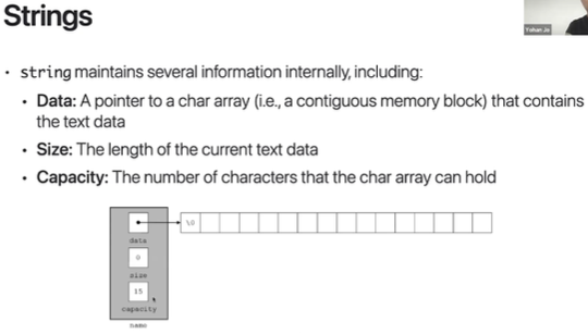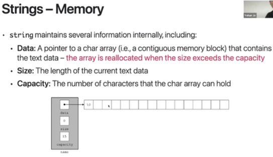 size, capacity, 첫번째 글자의 주솟값을 출력해보니
