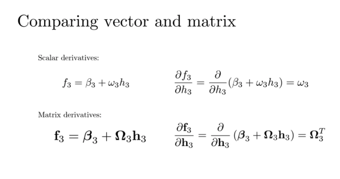 그럼 오메가인 weight matrix에 대한 미분값은?