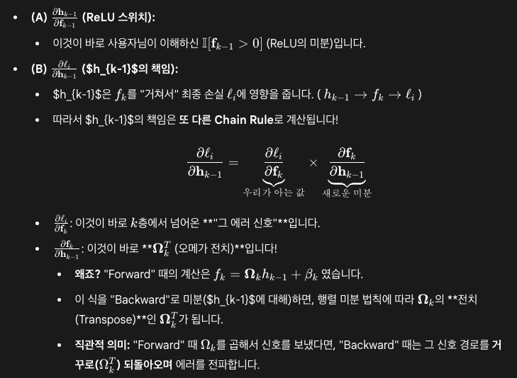 k 레이어 기준 이전 레이어인 k-1에서로 이를 넘겨주기위해서는