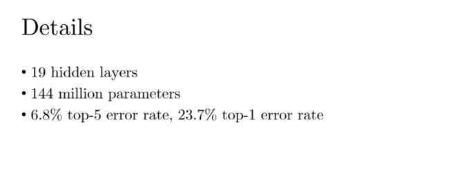 이 VGG라는 모델은 19개의 hidden layer를 갖고있으며