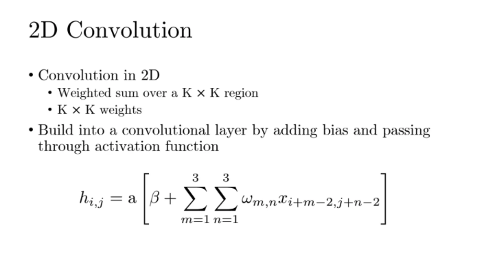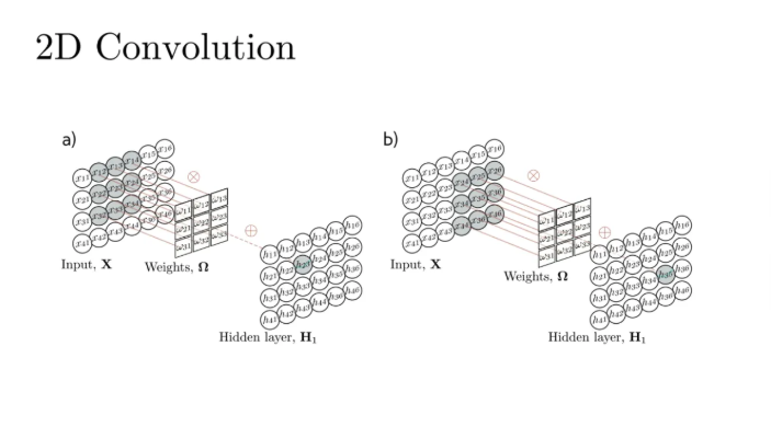 위 그림처럼 이렇게 커널이 훑고지나가면서 weighted sum한 것이