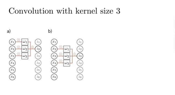 이런식으로 3개짜리 커널로 input 벡터를 훑고 가보자