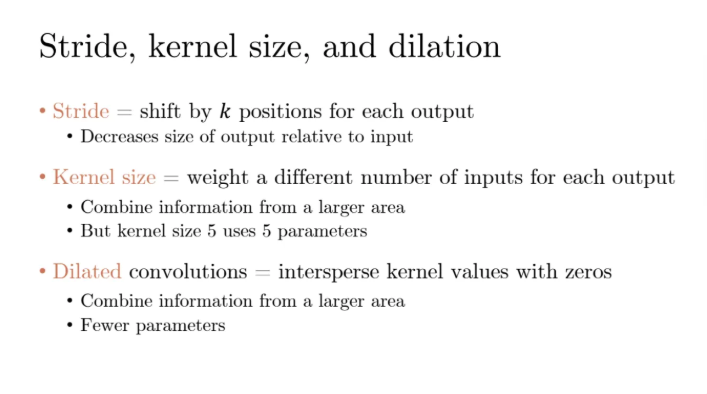 그 종류에는 stride, kernel size, dilated 등이 있는데 뒤에서 더 볼테지만 간단히 말해보자면