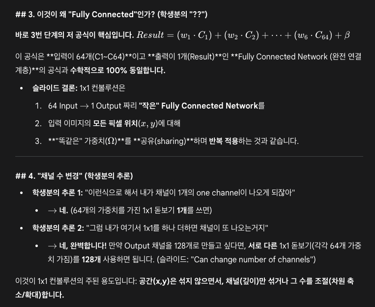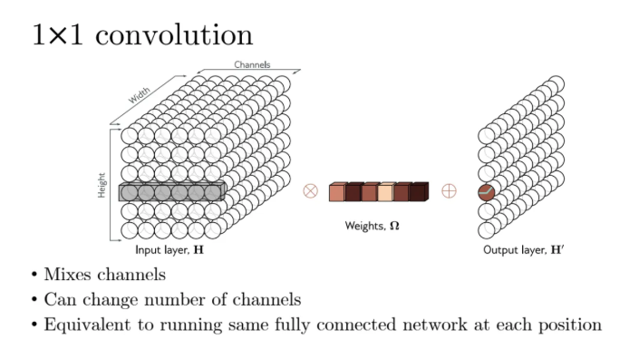 1*1 convolution은 주변 애들을 보면서 weighted sum을 해주는게 아니고