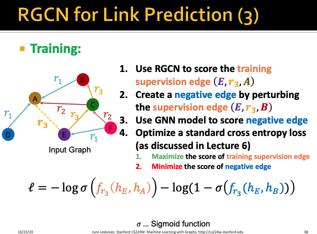 그런 다음 이제 RGCN을 이용해서 (E, r3, A)의 score을 계산해보자