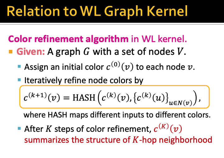 Weisfeiler-Lehman kernel의 neural network 버전이라고 생각하면 된다