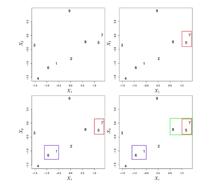 첫 단계에서는 각각의 데이터포인트들이 자기 자신의 클러스터가 된다