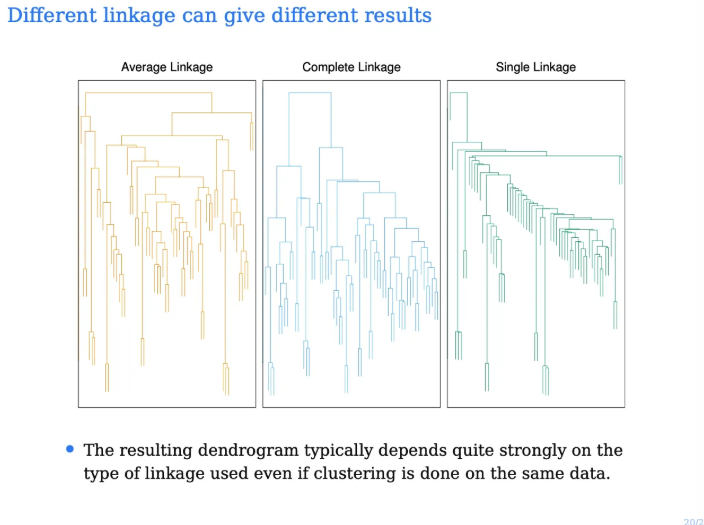 실제로 똑같은 데이터인데 linkage를 뭘로 하냐에 따라서 클러스터의 순서도 결과도 달라진다