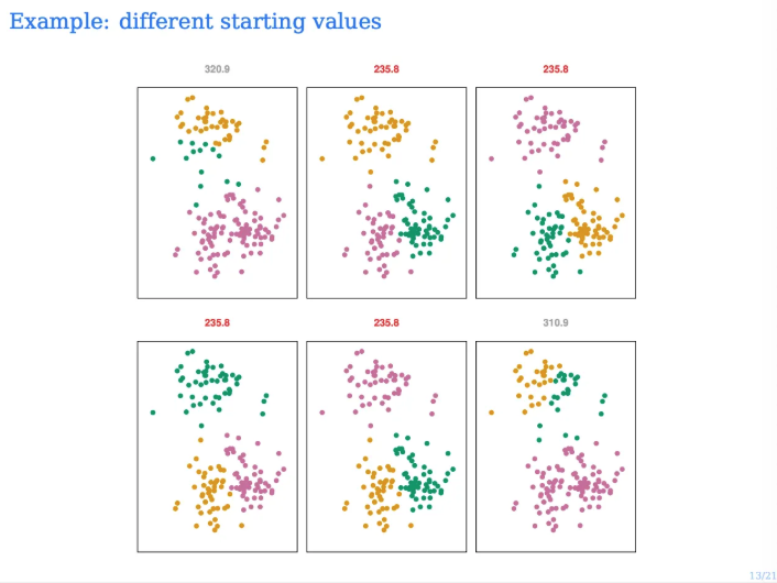 적어도 여러 번 돌린다음 그 중에서 WCV summation이 가장 작은 것을 사용해야한다