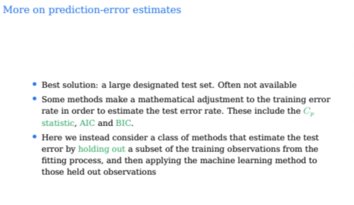 test dataset이 없을 때 test error를 estimate하기 위함이다