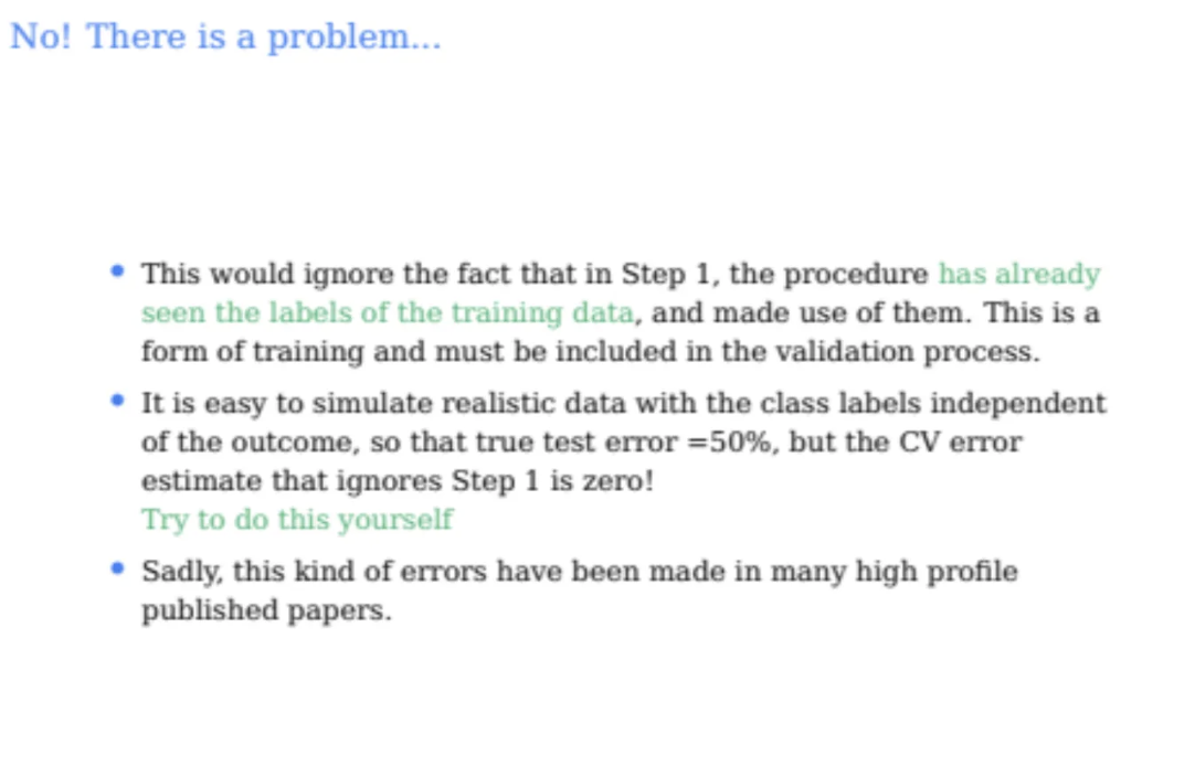 따라서 cross validation을 수행하더라도 이미 y값을 본 애들인 것이다