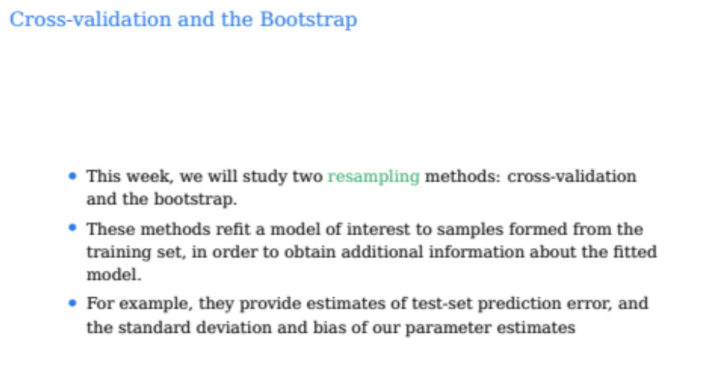 이번 시간과 다음시간까지는 resampling methods에 대해서 배우는데