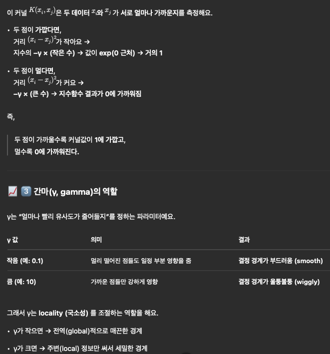 따라서 감마값을 너무 크게 잡으면 overfitting이 발생할 수도 있다는 것을