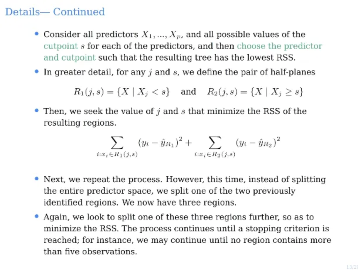 predictor space 안에서 잘 segmentation을 할까에 대한 얘기이다