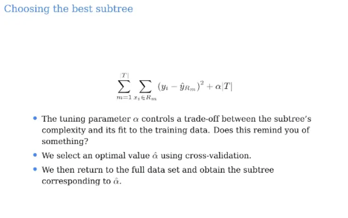 이 subtree들을 만들 때 cross-validation을 통해서 학습시키고
