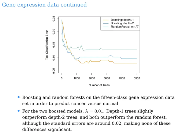 충분히 tree개수를 키우니까 d가 1인 boosting의 error rate이
