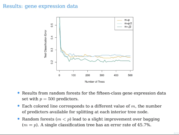 이때 random forests는 전체 predictor의 개수 p개에서