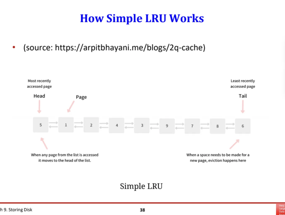 그런데 빨간색은 DB disk에만 있고 buffer pool에 존재하지않는다
