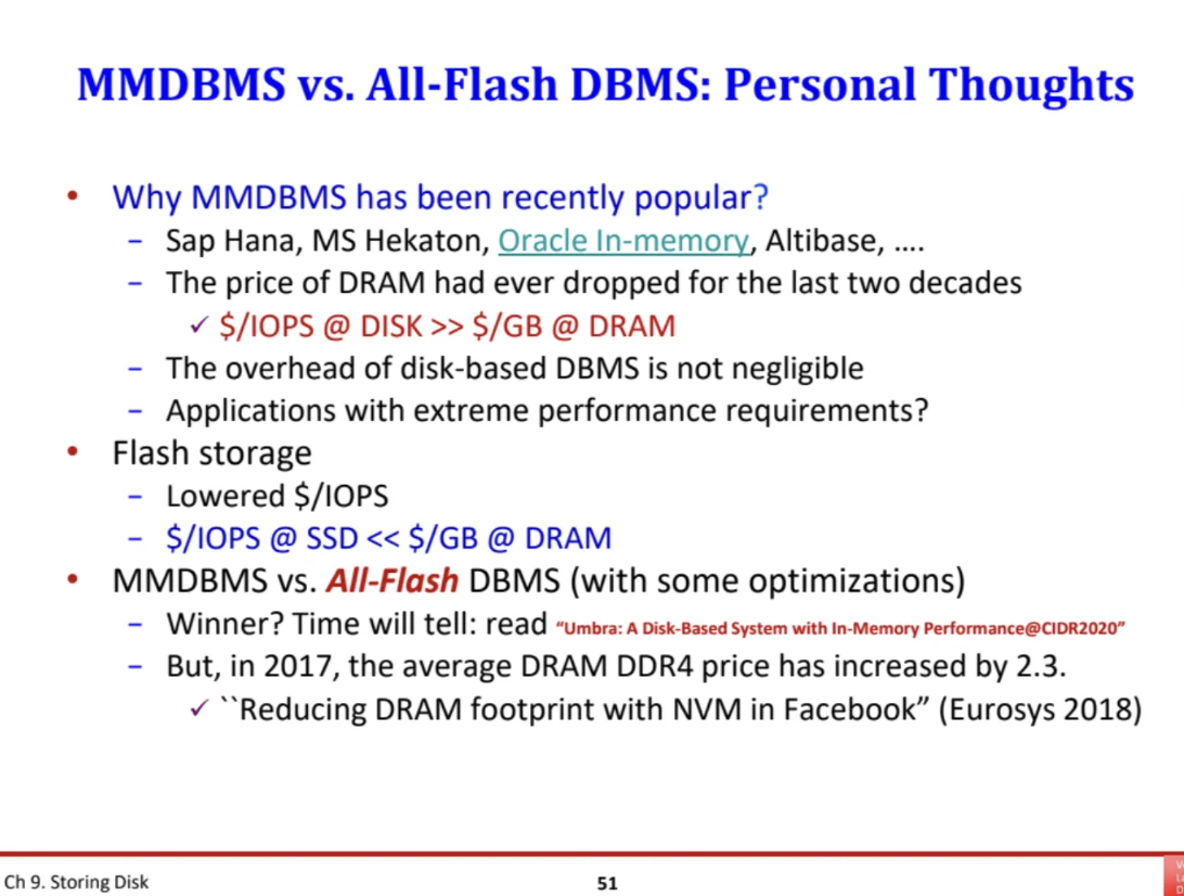 flashSSD를 사용한 DBMS가 대세가 된 것 같다고 하셨다