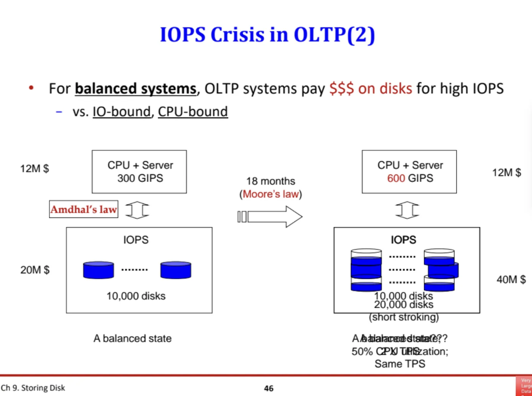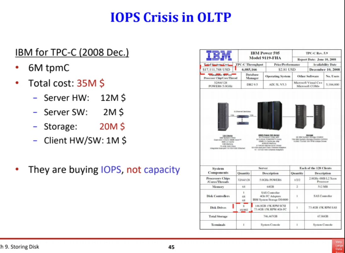 그 당시의 DRAM 가격 + 하드디스크 가격 + Disk IO 등