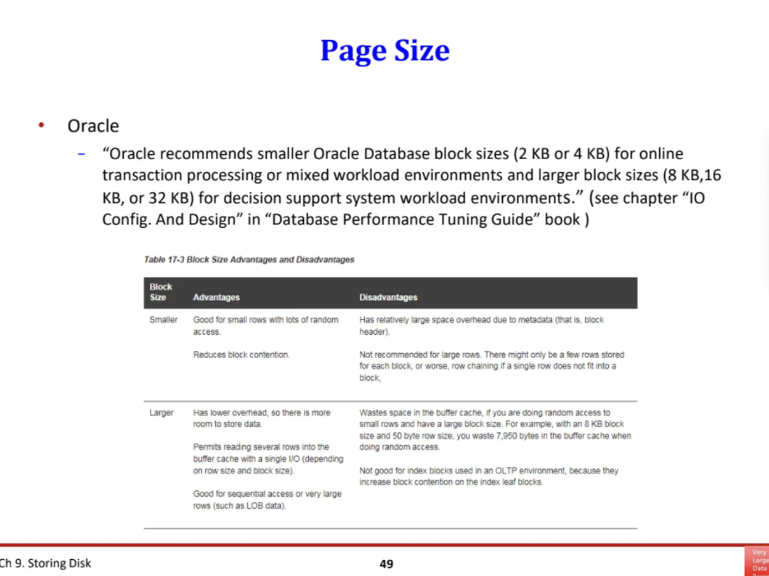 일반적으로 DBMS에서는 8KB를 사용한다고 한다