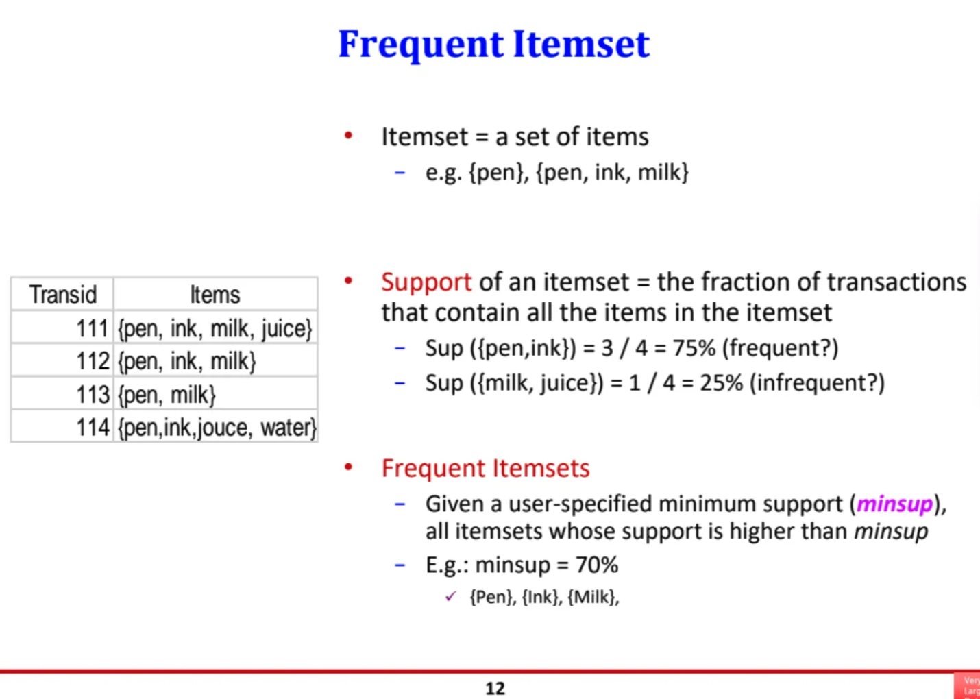 또 {Pen, Ink, Milk}가 frequent itemset이라면