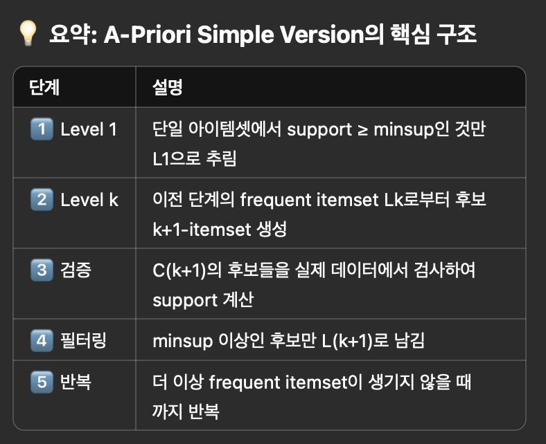 더이상 minsup을 넘는 새로운 조합이 없을 때까지 반복한다