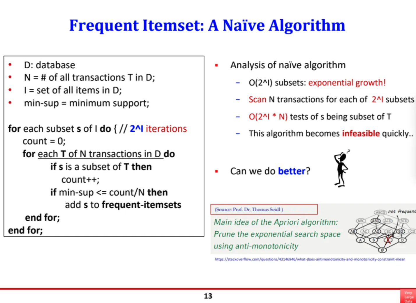 또한 만약 어떤 itemset이 frequent하지 않다면
