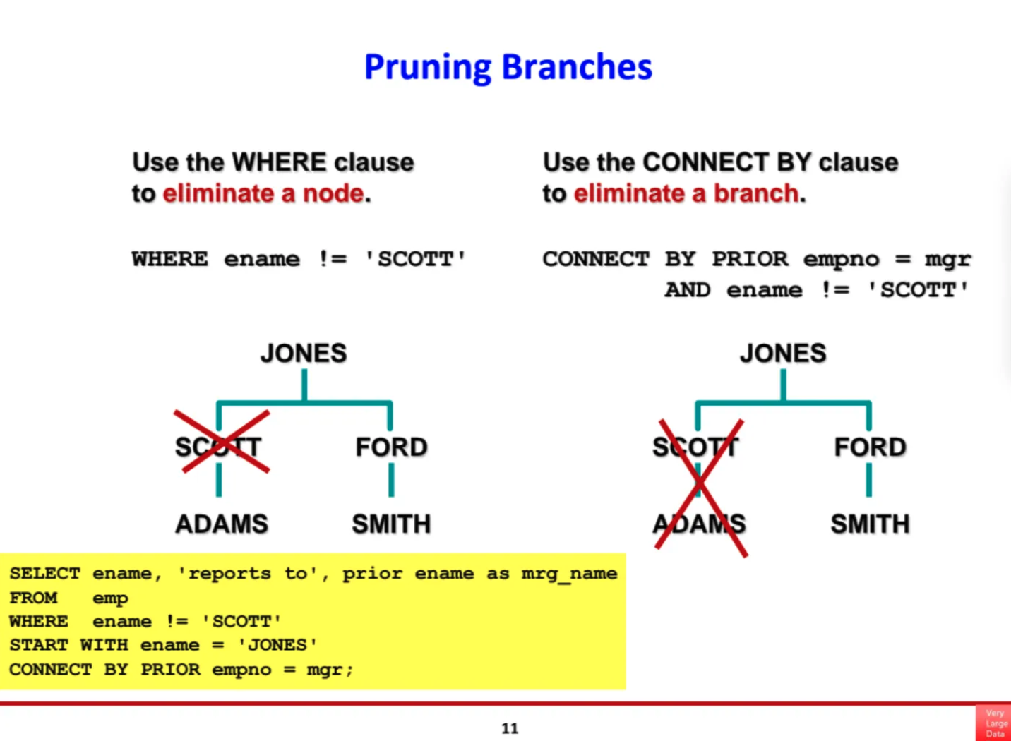 CONNECT BY PRIOR empno = mgr AND ename != 'SCOTT'