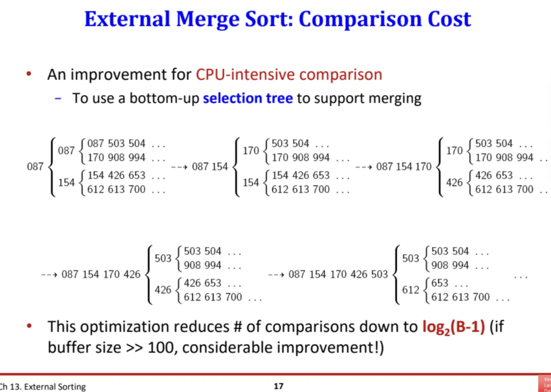 external sorting에서 데이터를 merge할 때