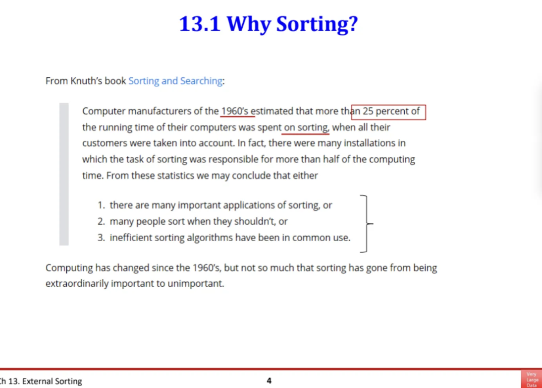 이정도로 전통적인 컴퓨팅에 있어서 sorting은