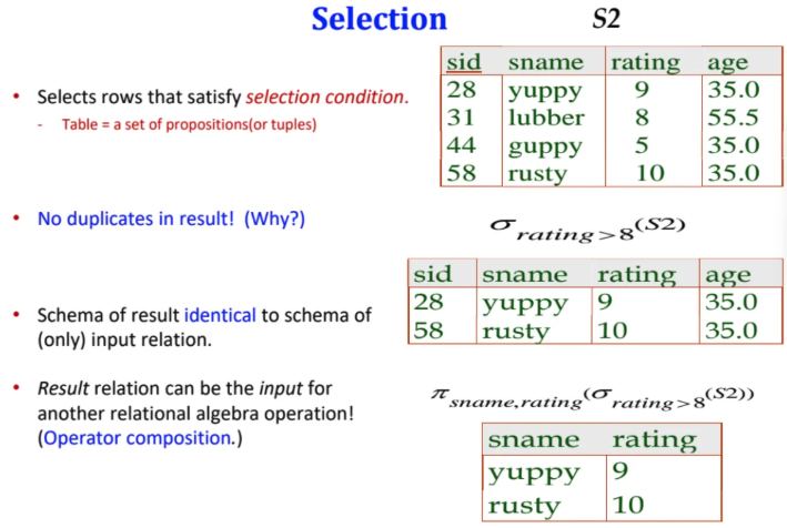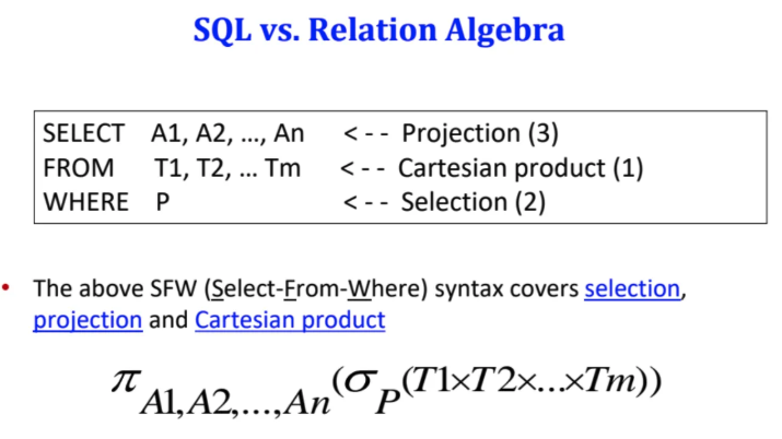 SQL은 이러한 관계 대수들의 조합으로 만들어진