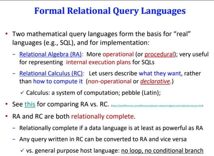 Relational Algebra가 조금 더 절차적인 언어라고한다