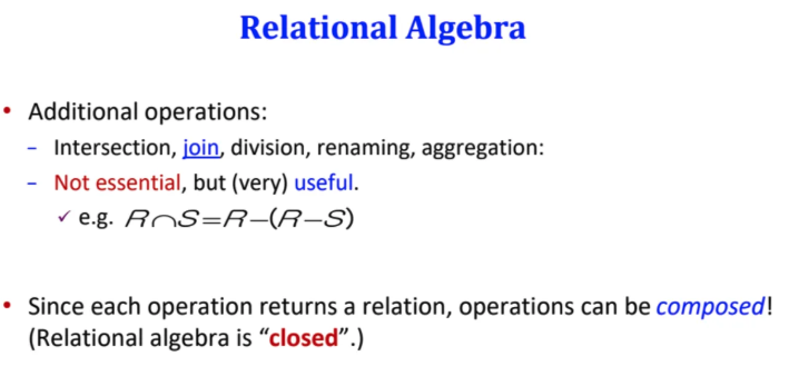 또한, 관계 대수의 closedness를 유지하기 위해서