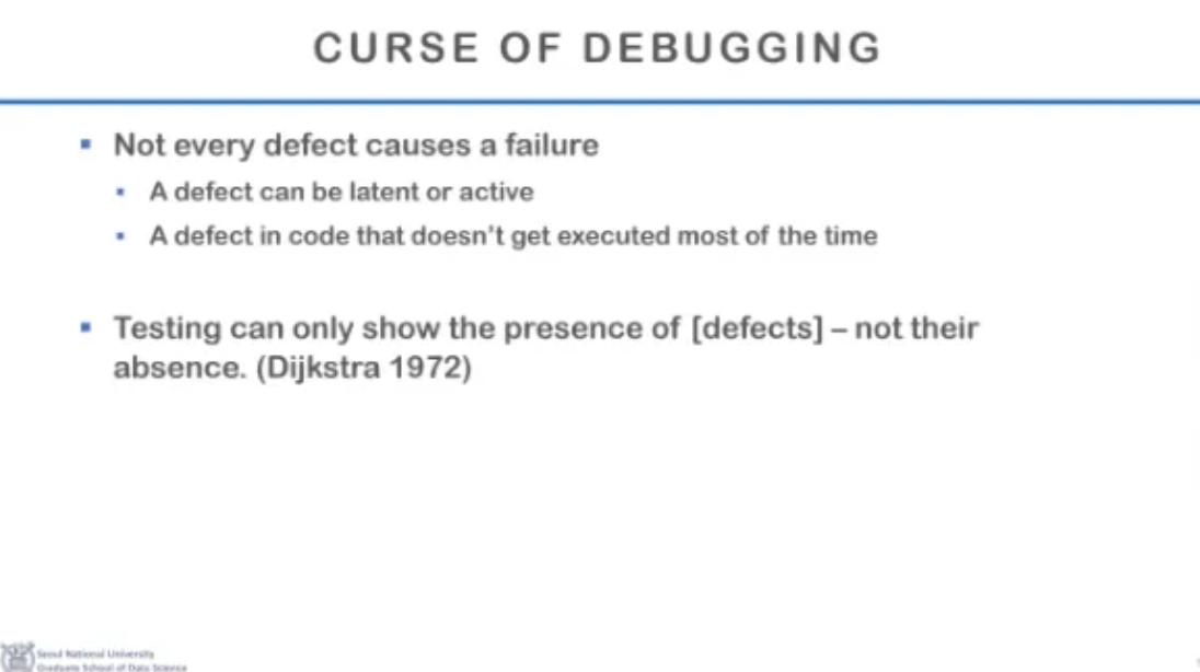 그렇다고 또 testing을 성공했다고 해서 defects가 없는 것도 아니다