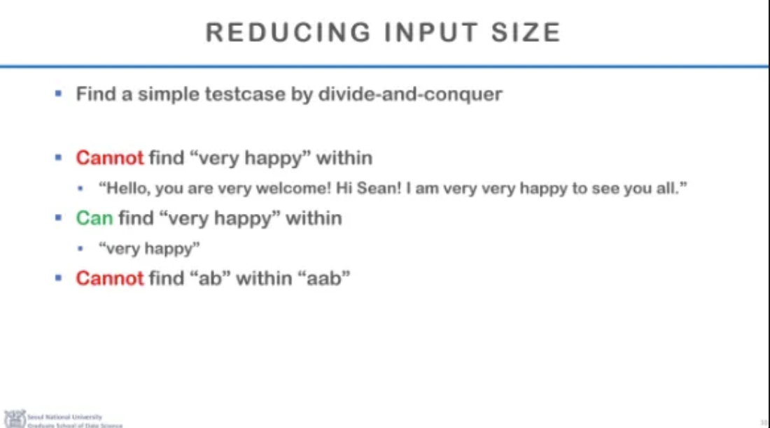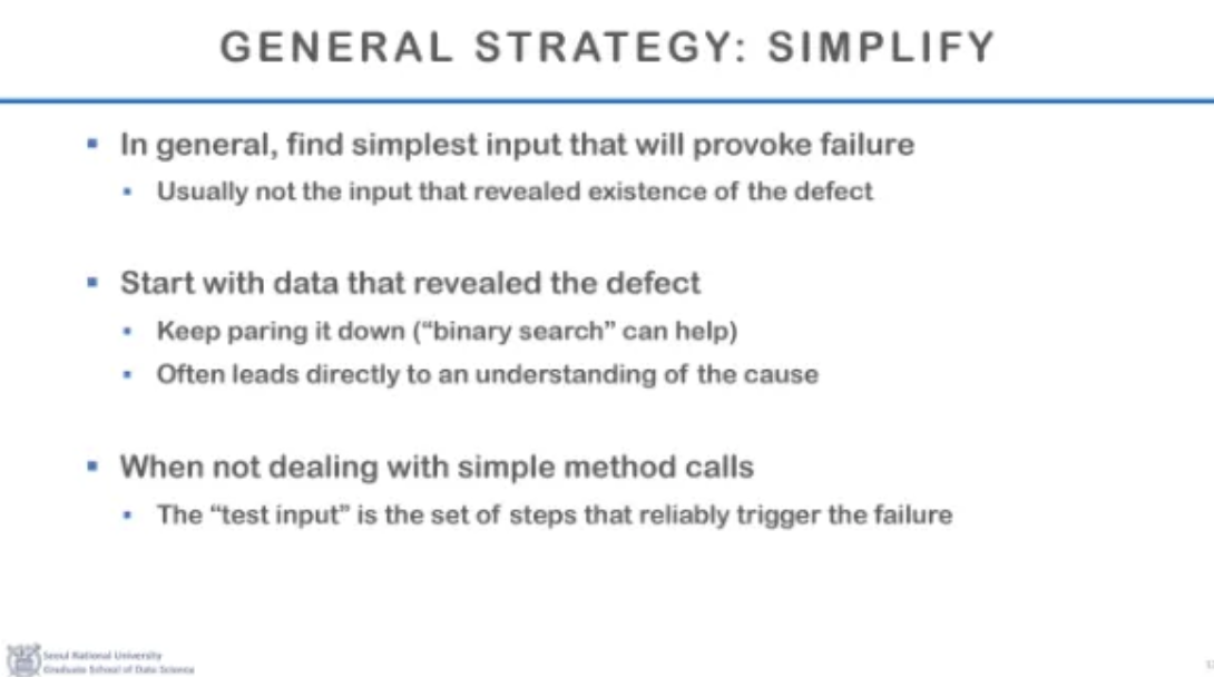 failure를 재생산 할 수 있는 아주 작은 test case를 만드는 것이 좋다