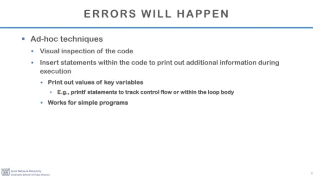 이번 수업시간에서는 디버깅에 대해서 다룬다