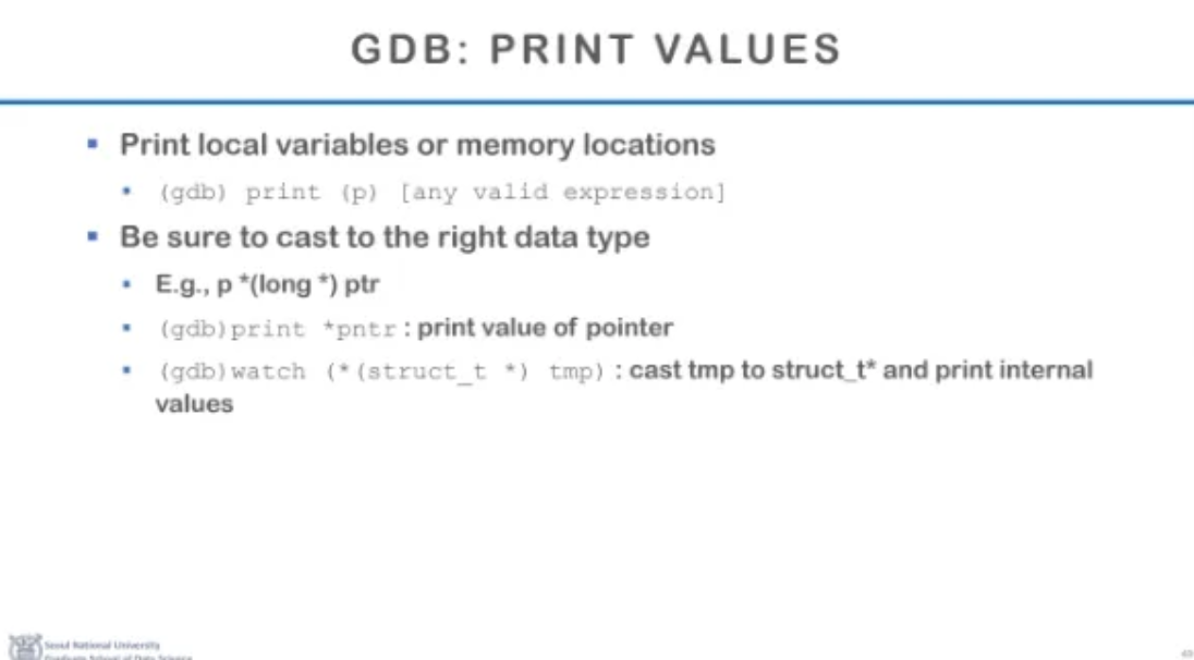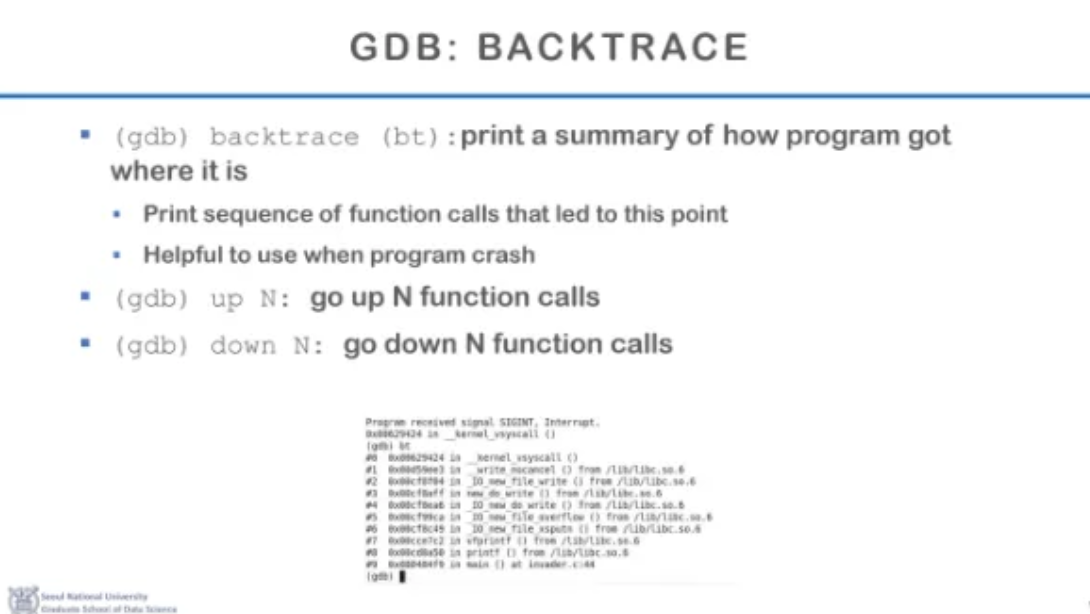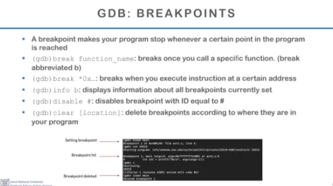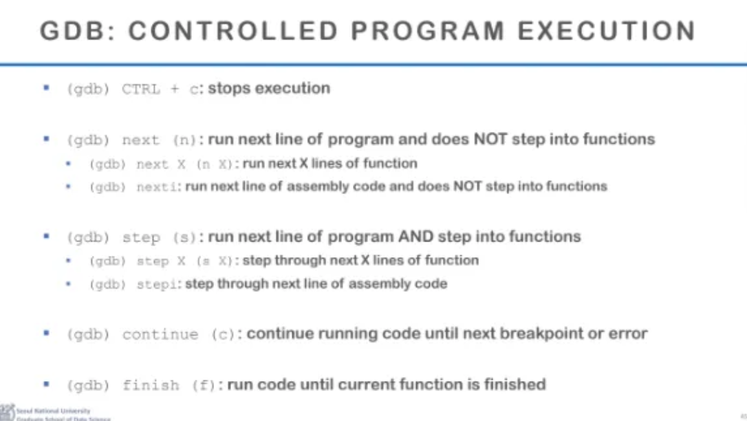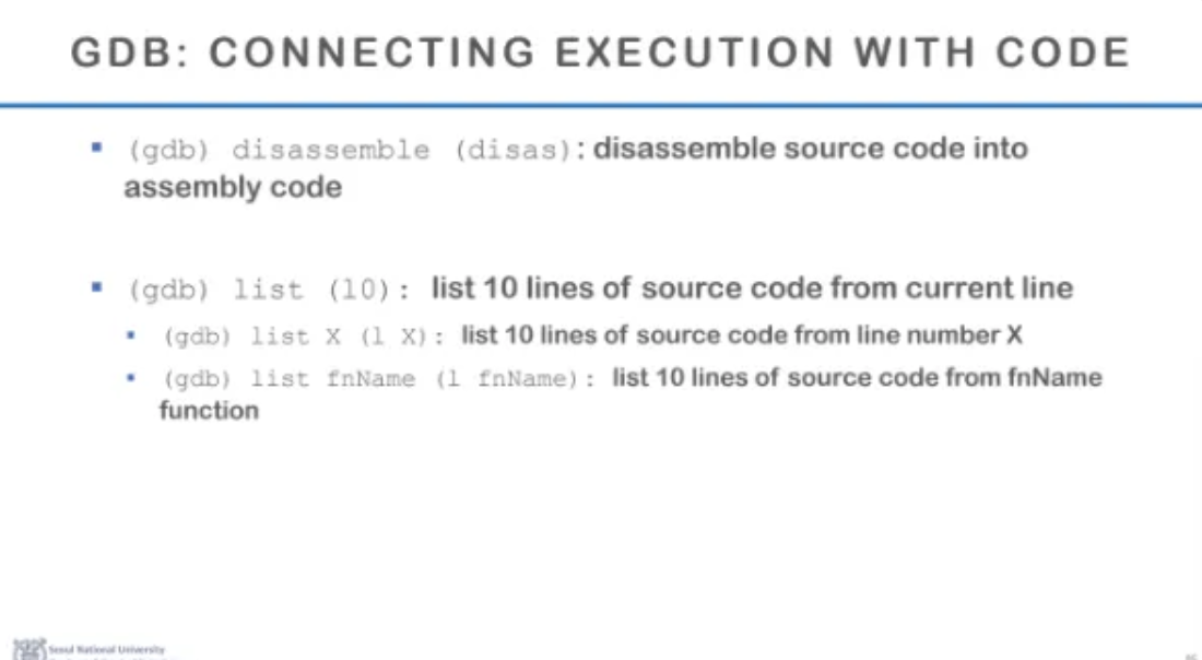 이런 것들으 gdb에서 가장 많이 쓰는 것들이라고 한다