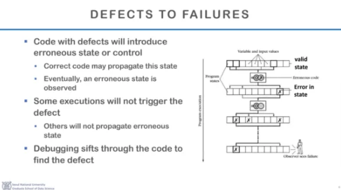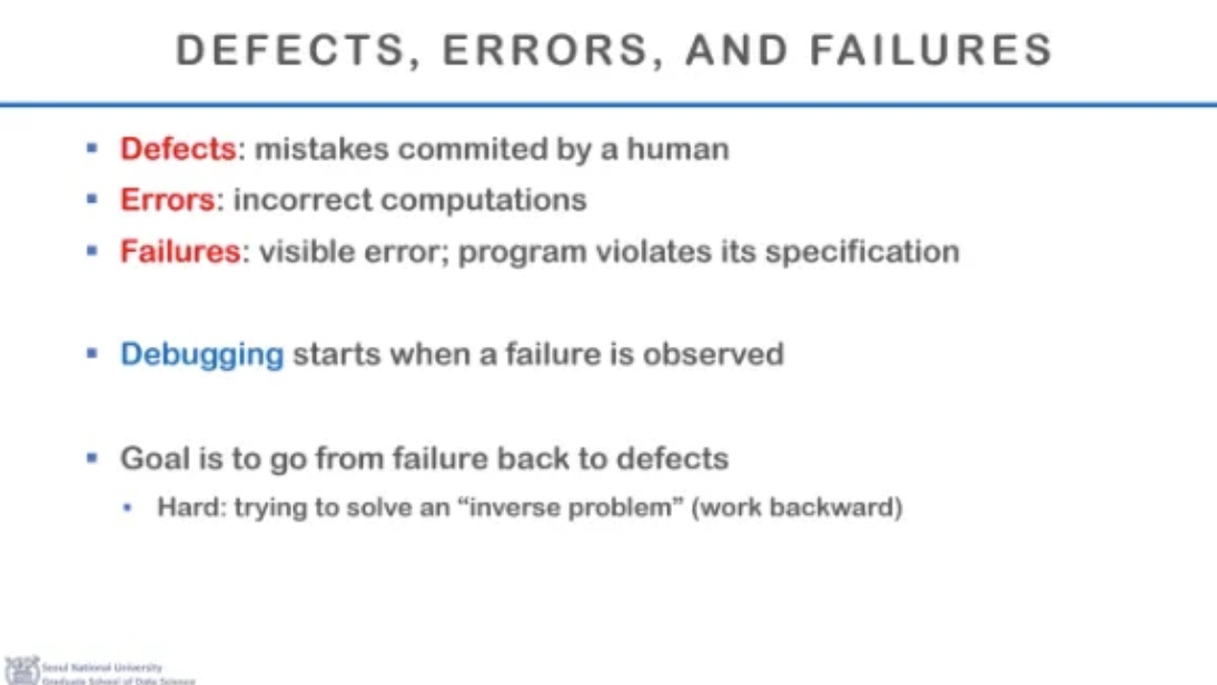 따라서 디버깅의 목표는 이러한 failures를 보고