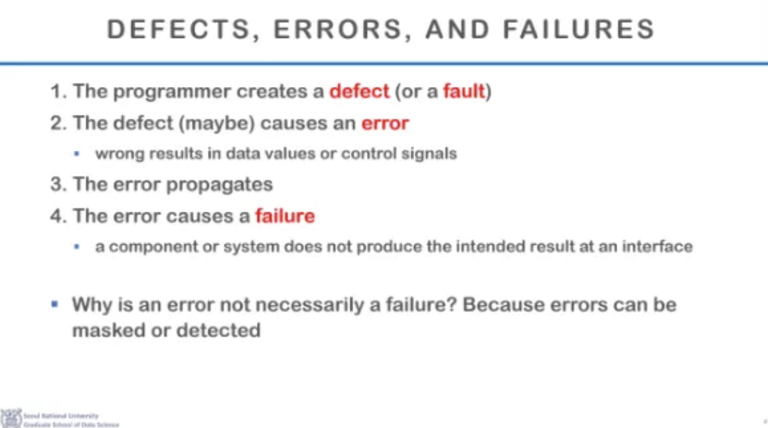 그래서 testing을 하는 이유는 숨겨진 defects를 찾기 위함이다
