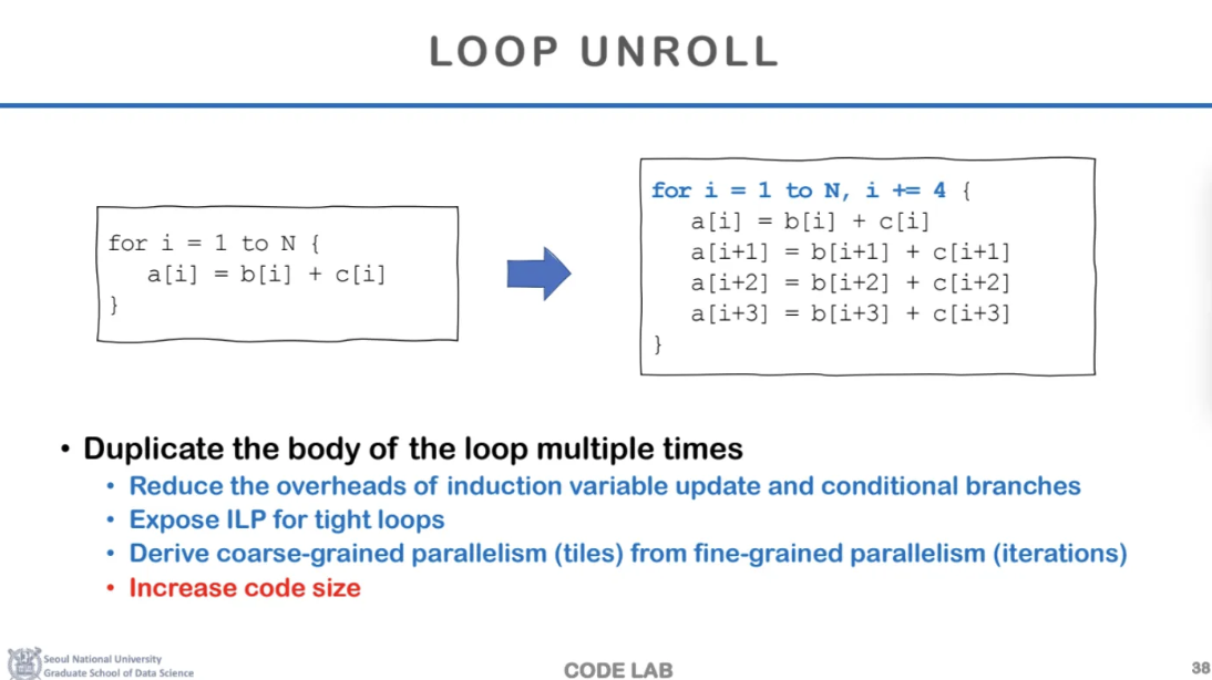 여기서 4개로 펼쳤으니 4는 unroll factor가 되는데