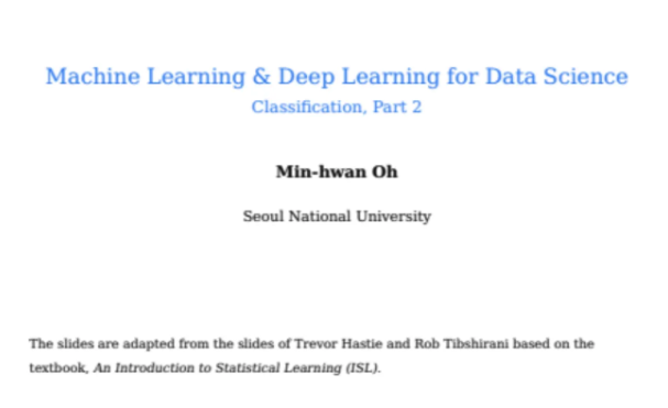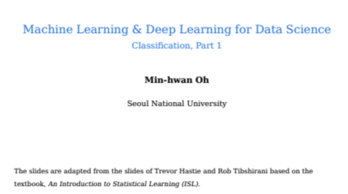 본 게시글은서울대학교 데이터사이언스대학원 오민환 교수님의데이터사이언스를 위한 머신러닝 및 딥러닝1 수업을학습을 목적으로 재구성하였습니다지난시간까지 Linear Regression에 대해서 배웠다이번에는 Logistic Regression에 대해서 배워본다 Logistic Regression은 우리가 흔히 말하는Classification를 해결하는 방법이다 Classification 문제란 우리가 모델을 통해서 예측해야하는 output즉, response variable이 category인 것을 말한다위 ppt에서 예시를 살펴보면눈의 색상이 brown, blue, green 3개 중에 1개를 맞춰야한다거나email을 보고 스팸인지 스팸이 아닌지 맞춰야하는 경우가 있다 즉, classification이..