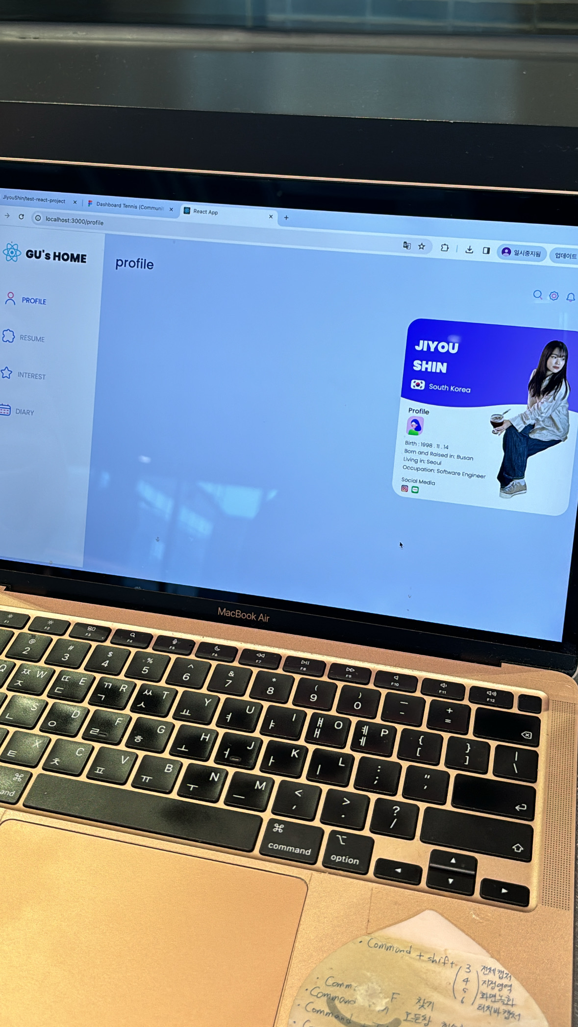 옛날부터 정말 해봐야겠다고마음먹었던 것 중 하나인개인 홈페이지 개발 및 배포 프로젝트 .. 초반에는 UI/UX부터Html, css까지 싹다 내 마음대로만들려고 했다가 시간 너무 오래 걸림 issue로방향을 조금 바꿔보기로 결정했었다 그래서 start bootstrap을 이용해무료 html, css 템플릿을 참고하였고각종 색상이나 디자인, 구성은내가 필요한대로 변경하여 완성한나의 웹페이지 프로젝트... https://my-app-jiyous-projects.vercel.app/ Welcome to GU's HomeSkills & Studies Programming Languages & Tools htmlcssjavascriptreactnode.jsspringc++javapythonkotliniOS/swif..